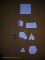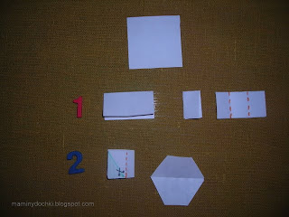1 – складываем пополам квадрат, ещё раз складываем для обозначения центра середины квадрата