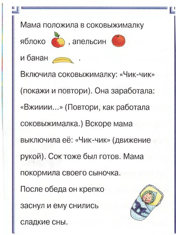 - Из книги Тру-ля-ля и бу-бу-бу проиграть сказку, как мама готовила обед для Язычка