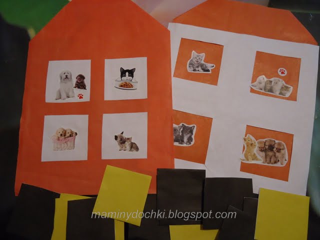 В -третьих, развивающие игры. Например, девочки сделали домик с окошками и поселили в окошки жвиотных, а потом Альфия говорила в каком месте загорается/гаснет свет, а Ляйсан и Луиза закрывали окошки черным и желтым цветом.