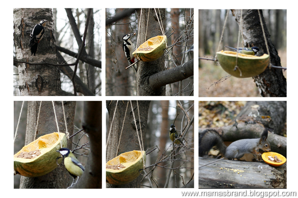 Для начала Наташа и Ярослав сделали кормушку и отправились в лес кормить птичек. Но это была не просто кормушка, а волшебная кормушка, так как не только птички синички прилетели из нее покушать, но и дятел, и даже белочка прискакала. Кормушка потрясающая, а фотографии Наташи еще лучше.