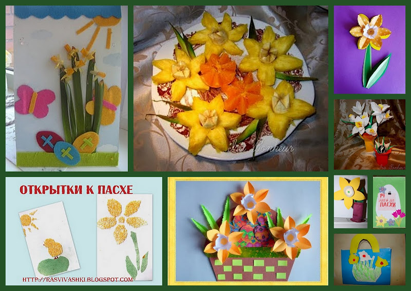 Ну а я в своем блоге "Творим вместе с детьми" рассказала, как сделать корзиночку с нарциссами. Спонтанно возникла идея обменяться пасхальными подарочками и сделать сюрприз детям. Так как этот обмен не был запланирован заранее, то и подготовиться к нему не было времени. Подарочек мог быть любым, сделанным своими руками или покупным, большим или маленьким, главное, чтобы его дарили от души. Некоторые мамы посмотрели на карте, где живет их адресат. А ведь это так интересно, потому что наши участники живут далеко друг от друга. Первые посылочки уже порадовали двух девочек, надеемся, что и остальные подарки не потеряются в пути.