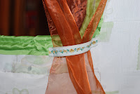 Внизу окна по внутренней стороне прикрепила 2 держателя для занавесок из тесьмы