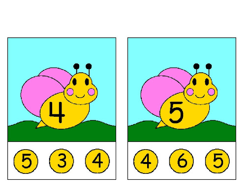 Возьмите один лист и прищепку. Объясните ребенку, что он должен посмотреть на цифру, которая на пчелке, потом выбрать такую же цифру из трёх, нарисованных ниже. Прикрепить на неё прищепку (покажите детям, как правильно и удобно крепить прищепки) и произнести цифру на английском.