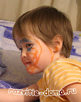 Например, мой сын Сёма себя просто раскрасил и сказал: «Я – КЛОУН» Он использовал фломастеры и мамину любимую помаду (спросил, конечно).